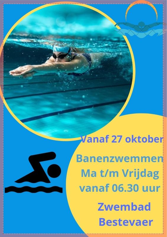 Vanaf 27 oktober kan je van maandag t/m vrijdag vanaf 06.30 uur al terecht voor banen zwemmen.
