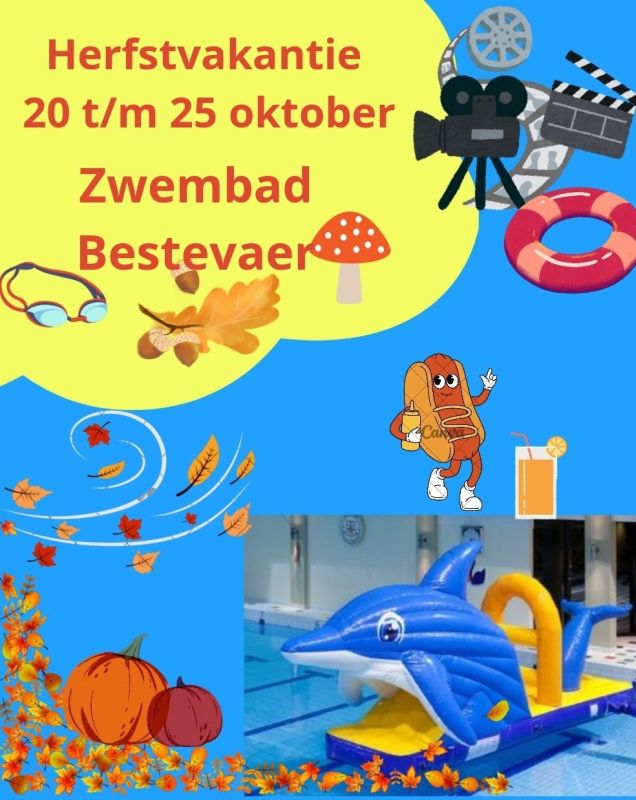Bekijk onze mooie flyer maar eens, ontmoet "SPAT" onze waterrat, kom lekker chillen op een luchtbed of band tijdens de "movie-night" of kom gewoon gezellig met familie, vriendjes/vriendinnetjes van onze waterglijbaan roetsjen. Zijn jullie erbij tijdens de herfstvakantie??